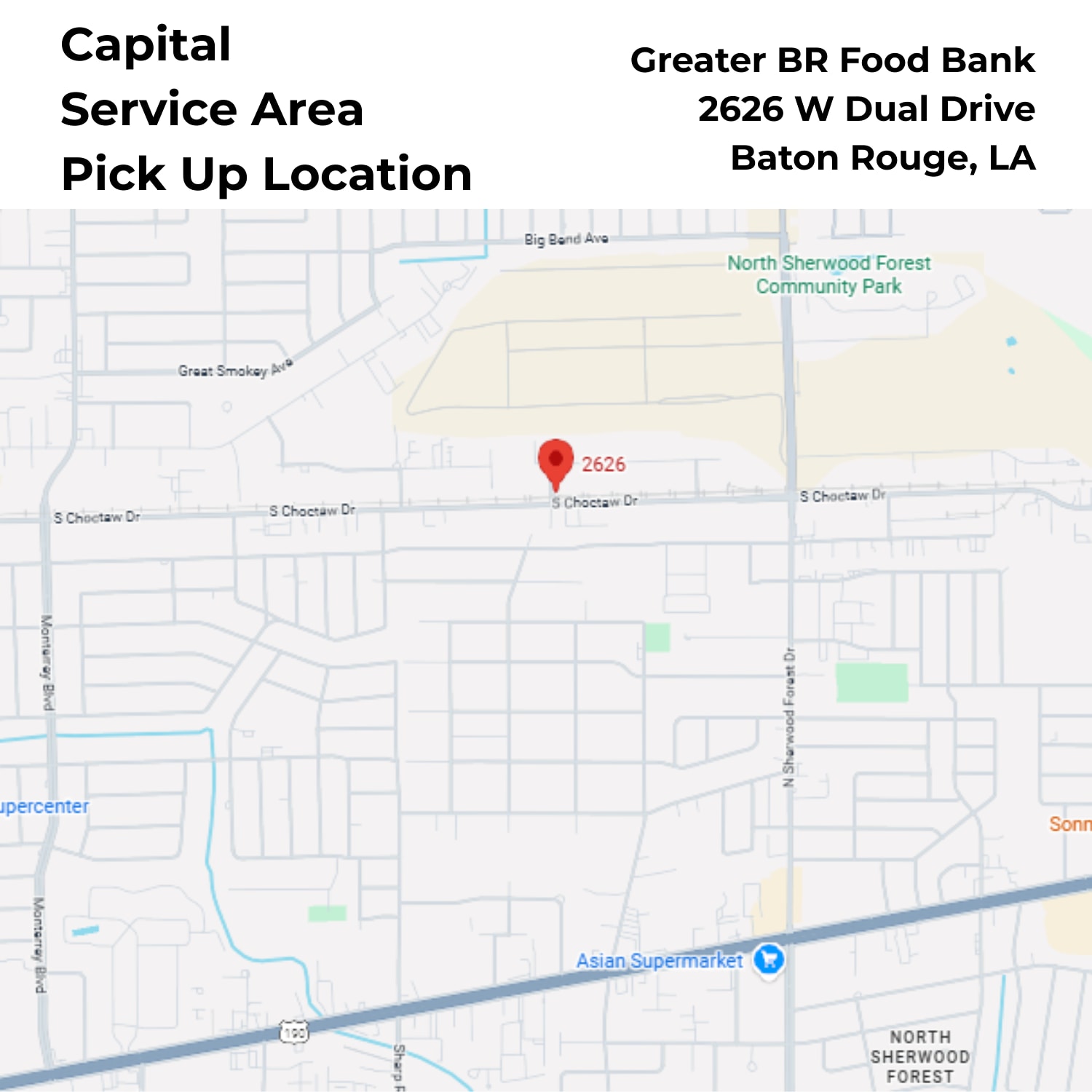 Central, Southern and Western Districts will be at Greater Baton Rouge Food Bank at 2626 W Dual Drive in Baton Rouge, LA.